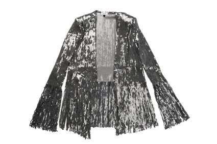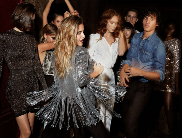 De hecho, todas las piezas llevan el nombre de una de ellas. Desde los vestidos mini, el top y la blazer con flecos de lentejuelas, los pantalones bistrech de campana o las chaquetas de esmoquin con solapas de raso y grandes hombreras, hasta la blusa de volantes, los bodies cruzados, el jersey y la falda de punto extrafino con hilos de lurex o el bustier y la falda con lazada en jacquard.